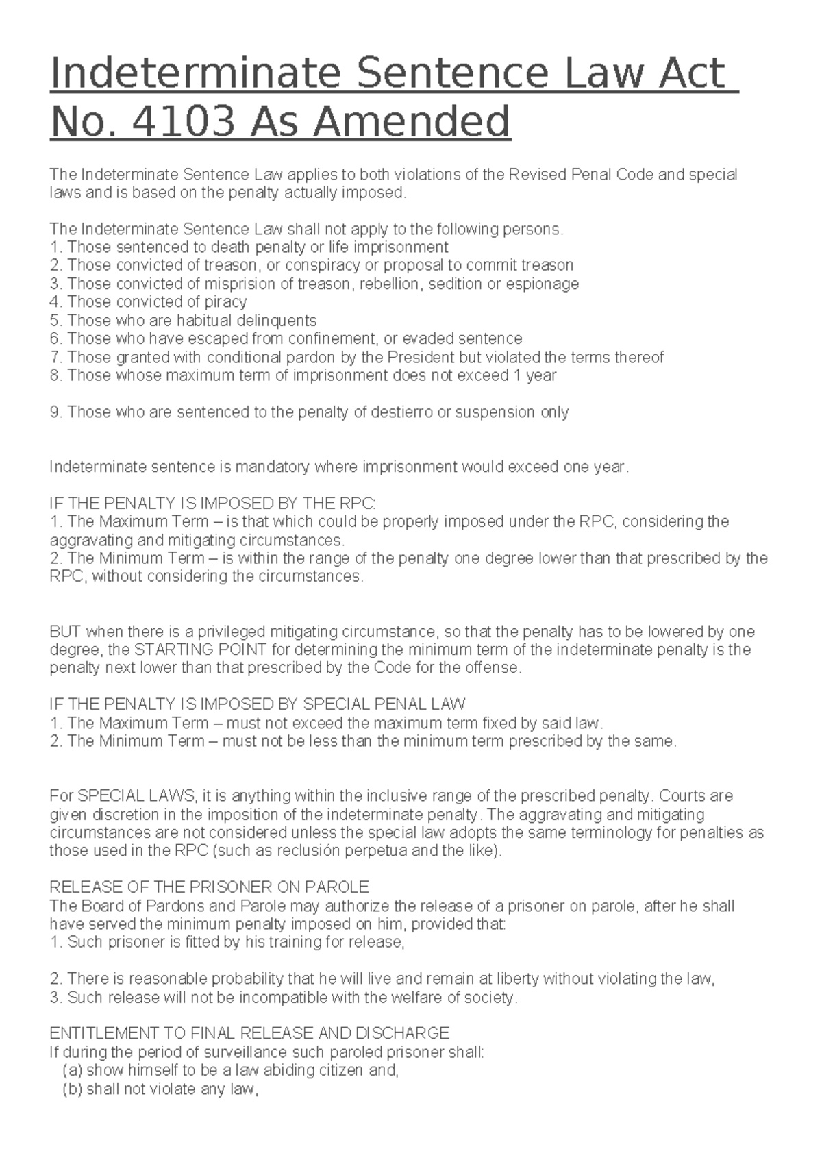 What is Indeterminate Sentence Law?